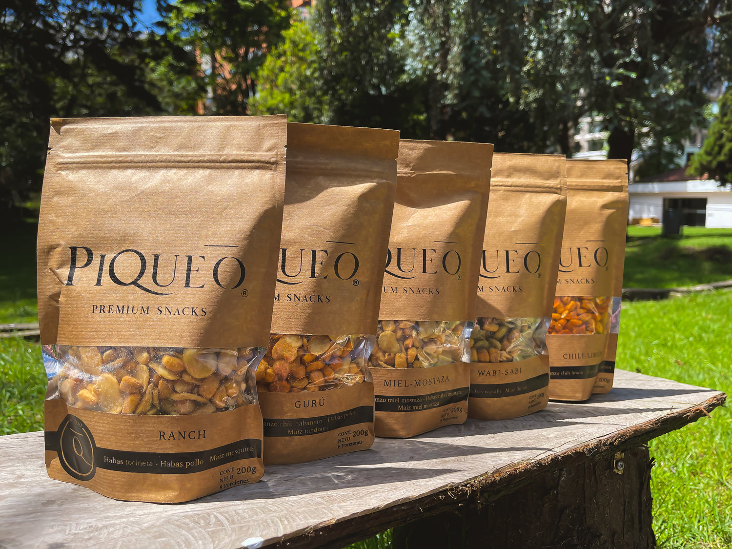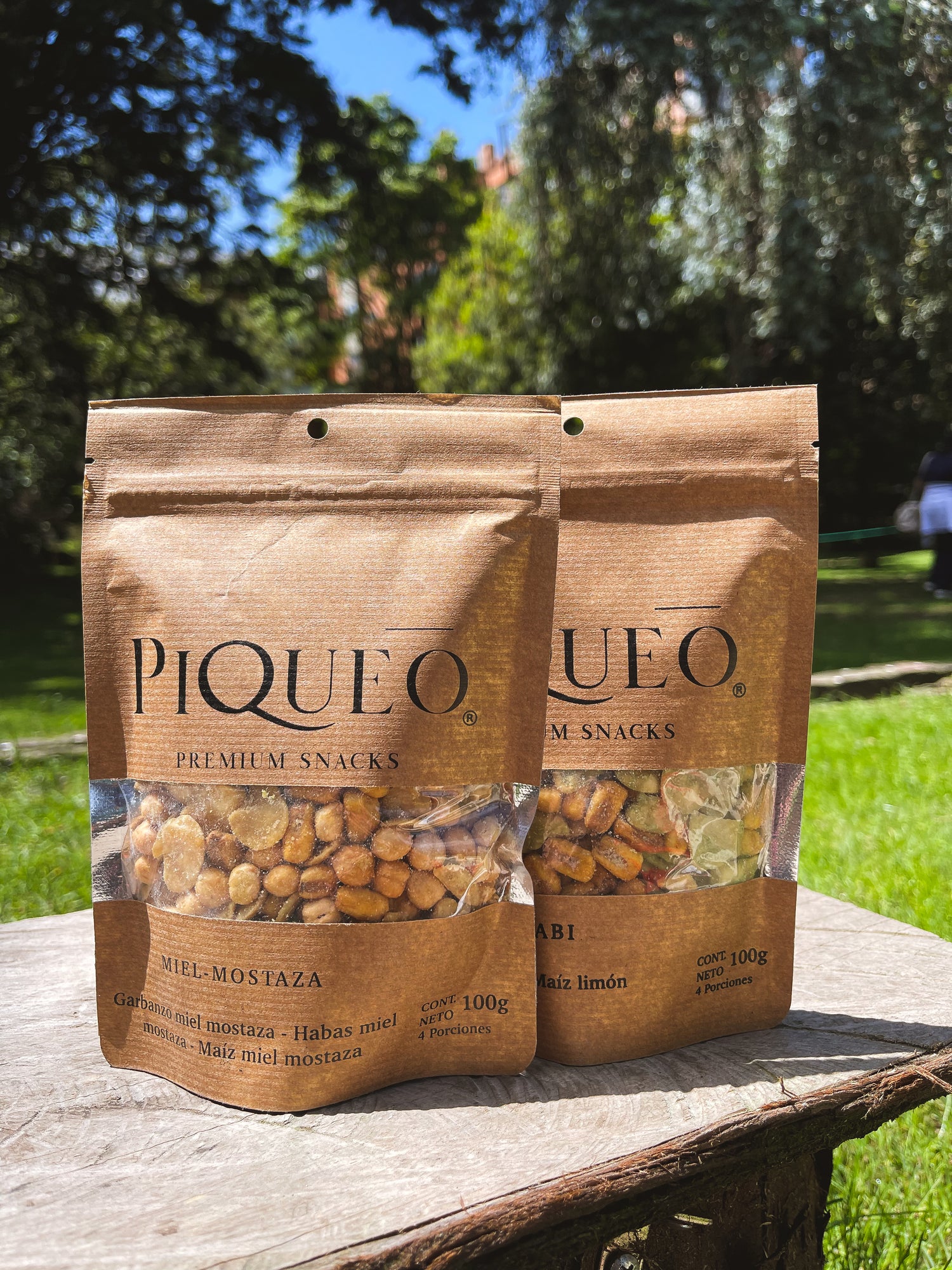 Somos Piqueo Snacks, una marca disruptiva en el mercado de pasabocas en Colombia creada en el 2020 con el objetivo de innovar en el sector de alimentos. Nacemos por una necesidad latente de los consumidores de encontrar productos diferentes y de alta calidad, creando así mezclas de diferentes tipos de granos con sabores únicos.